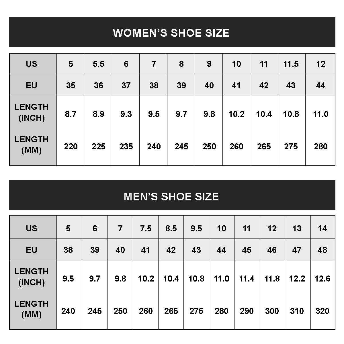 3. Messen Sie Ihre Markierung von der Wand (Ferse bis zur längsten Zehe beider Füße). Nehmen Sie den größeren der beiden Fußlängenwerte und vergleichen Sie ihn mit unserer Größentabelle, um Ihre Schuhgröße zu ermitteln.